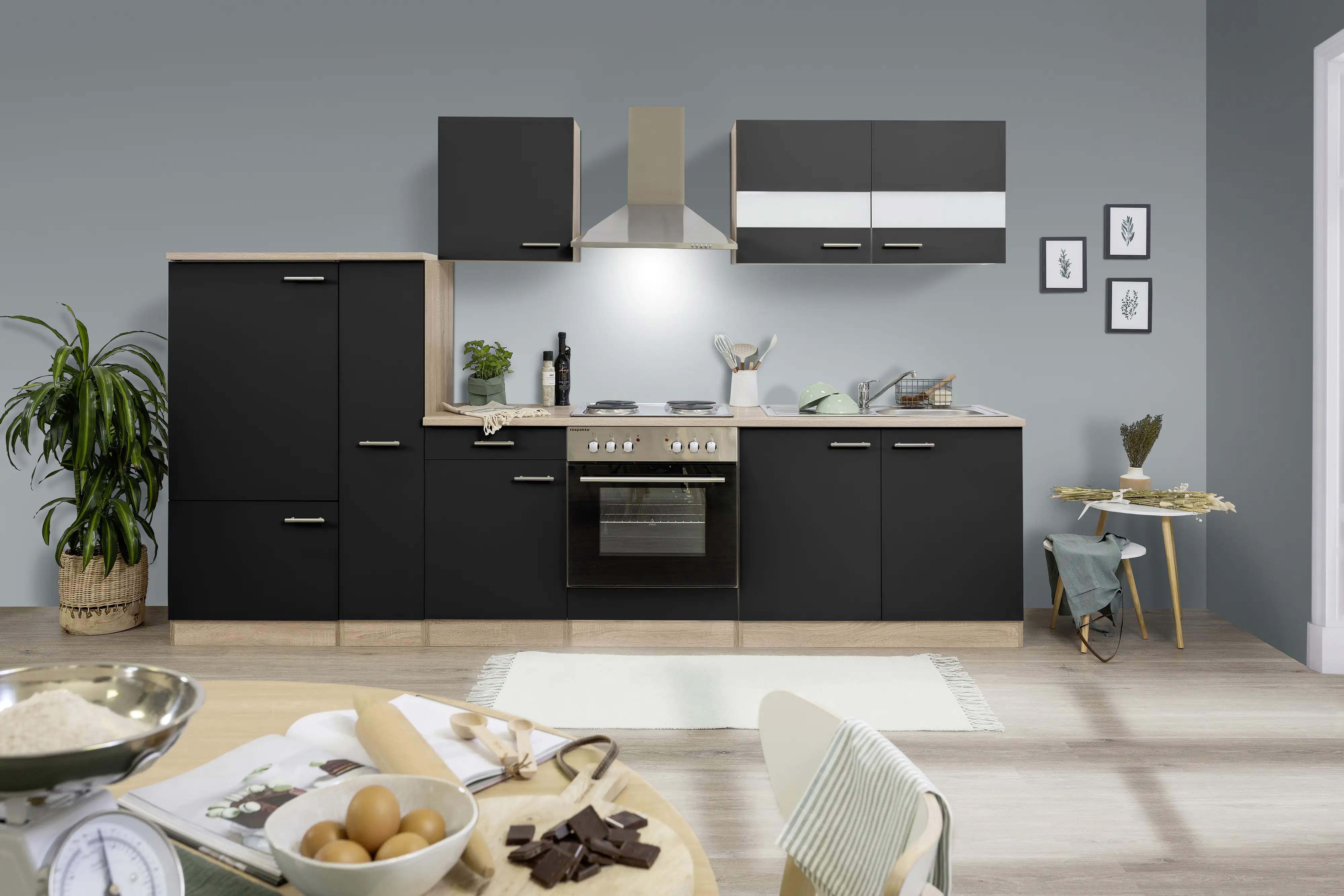 Respekta Economy Küchenblock 300 cm schwarz, Eiche Sonoma, KB300ESS